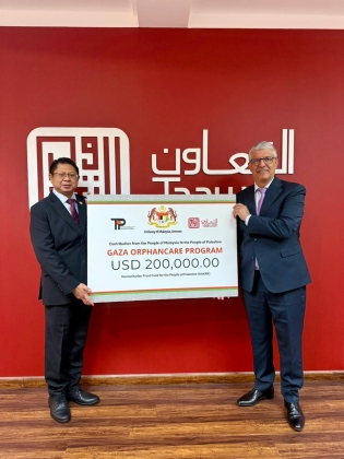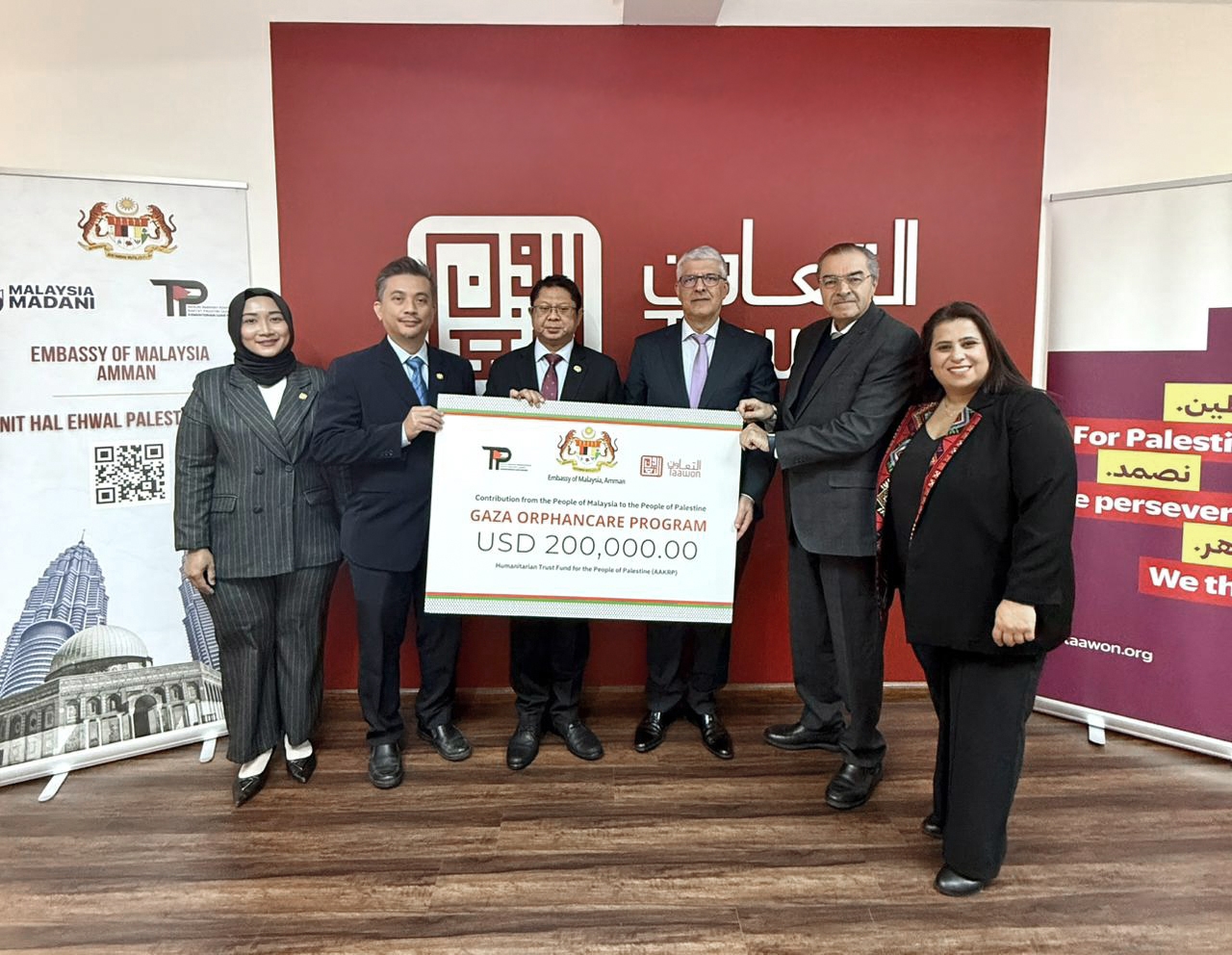 The Embassy of Malaysia in Amman announced a contribution of USD 200,000 to Taawon in support of the NOOR Initiative for orphaned children in Gaza. This marks the second consecutive year of Malaysian support, with the government doubling its contribution from USD 100,000 last year to USD 200,000 in 2025 to expand life-saving services for orphaned children in the Strip.The contribution was announced at an official ceremony attended by Malaysia’s Ambassador to Jordan and Palestine, H.E. Dato’ Mohamad Nasri Abdul Rahman; Taawon’s Director General, Dr. Tareq Emtairah; , senior staff members Nasser Al Aloul and Hana Al Aruri, along with representatives of the Embassy.Ambassador Abdul Rahman stated that the contribution, provided through the Akaun Amanah Kemanusiaan Rakyat Palestin (AAKRP), Malaysia’s Humanitarian Trust Fund for the People of Palestine, reflects Malaysia’s continued commitment to supporting the Palestinian people. He highlighted the urgent needs of children in Gaza and reaffirmed Malaysia’s interest in strengthening its cooperation with Taawon due to the organization’s trusted role in delivering humanitarian programs that respond to real needs on the ground.