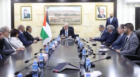 "We have on this earth what makes life worth living" by Palestinian poet Mahmoud Darwish spray painted as a calligraphy on the walls of the Ghassan Kalafani library in Nahr el Bared refugee camp in Beirut, Lebanon.